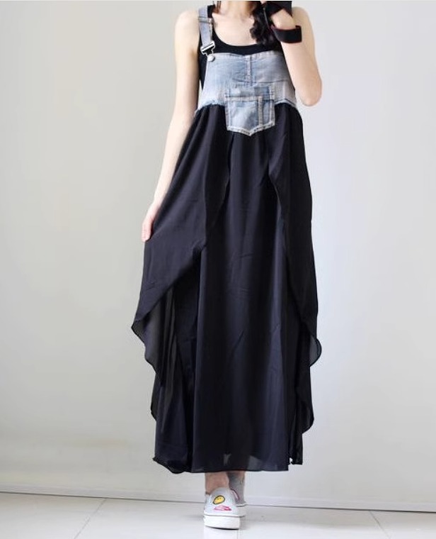 【異素材ドッキング☆レディース サロペット スカート】サロペット レディース スカート ワンピース 異素材 ドッキング ロング丈 サロペ ロングスカート 韓国ファッション デニム 個性的 春 夏 秋 冬 オールインワン おしゃれ カジュアル 送料無料