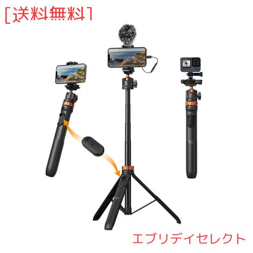 スマホカメラ三脚K&F Concept 自撮り棒 7段伸縮 最大高さ159cm コールドシュー付き 卓上スタンド 360度回転 自由雲台 1/4ネジ穴 持ち運び