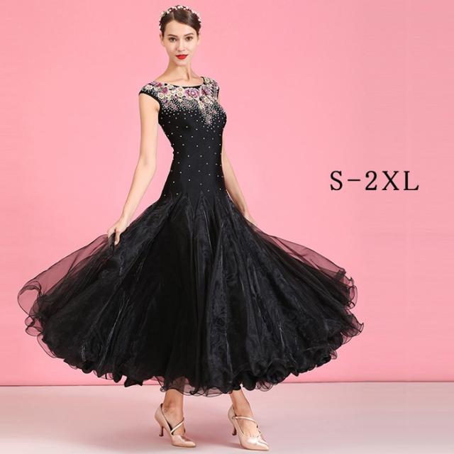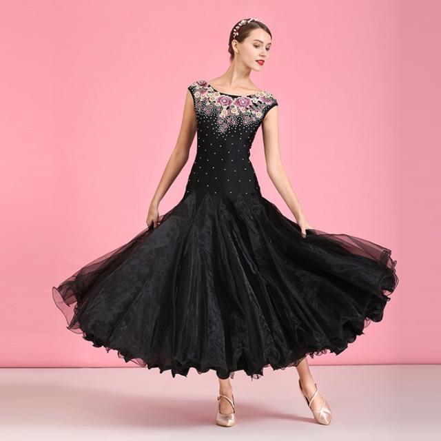 高品質 社交ダンス ドレス 社交ダンス衣装 長袖 花柄 初心者 練習着 広がる裾 発表会用 ワンピース パーティー スタンダード レッスン着 発表会 競技着 演出用 開場ドレス ワルツ専用ドレス ロング丈 オールシーズン ブラック be199zbcyh5 be199zb