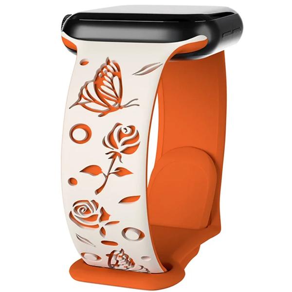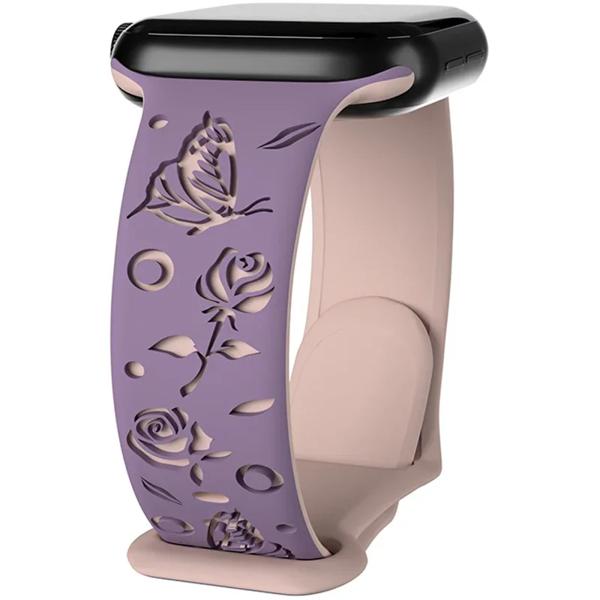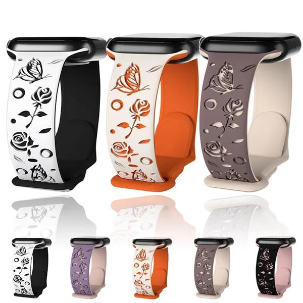 Apple Watch用の花が刻印されたストラップ,シリコンブレスレット,iwatchシリーズウルトラ10,9,8,7se,6,46,40,41,42,44mm 35mm、49mm