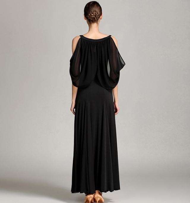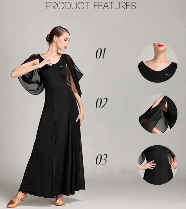 社交ダンス ドレス 社交ダンス衣装 長袖 黒 初心者 練習着 広がる裾 発表会用 ワンピース パーティー スタンダード レッスン着 発表会 競技着 演出用 開場ドレス ワルツ専用ドレス ロング丈 オールシーズン ブラック