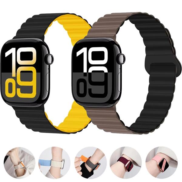 磁気シリコンストラップ Apple Watch Ultra 49mm 10 42mm 46mm 9 8 7 41mm 45mm 交換ブレスレットシリーズ 6 5 4 3 SE 44mm 40mm