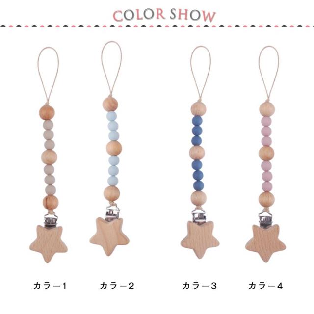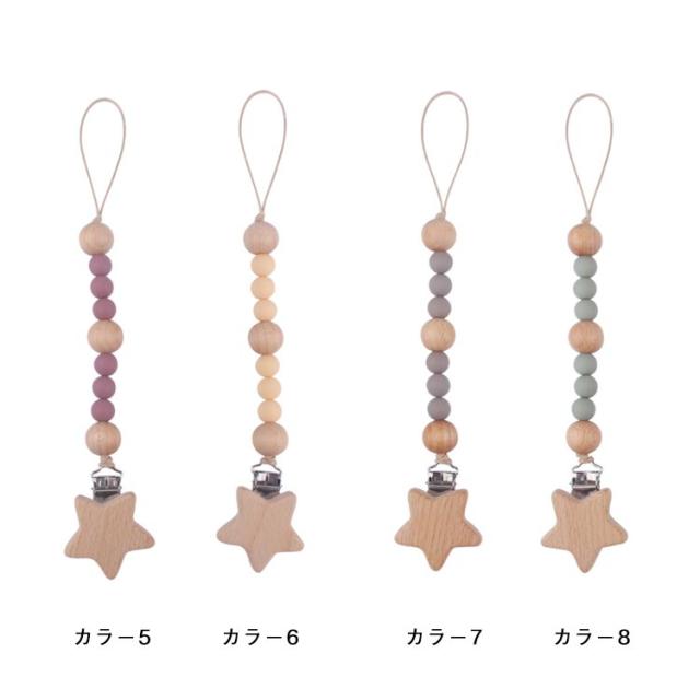 | 【おしゃぶりホルダー】【木製・シリコン】 おしゃぶりにもおもちゃにも使えるマルチホルダー。 留め具が星形で木製のかわいいおもちゃホルダー。 甘くない色味でナチュラルなデザイン。 子どもの服やベビーカーに付けて、おもちゃやおしゃぶりがなくならないように固定するストラップです。 シリコンBPAフリー・フタル酸エステル等の環境ホルモンを含まない 木製パーツは全て無塗装・無着色の天然木製です。 | |