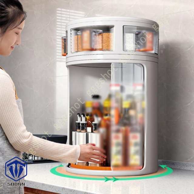 360°回転式調味料収納ラック おしゃれなー調味料スタンド シンプルな回転式スパイスボトルホルダー キャビネット用回転スパイスタワー