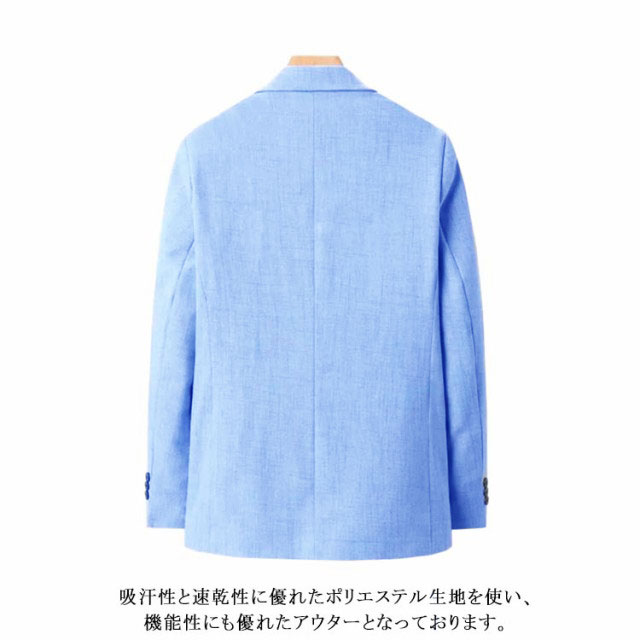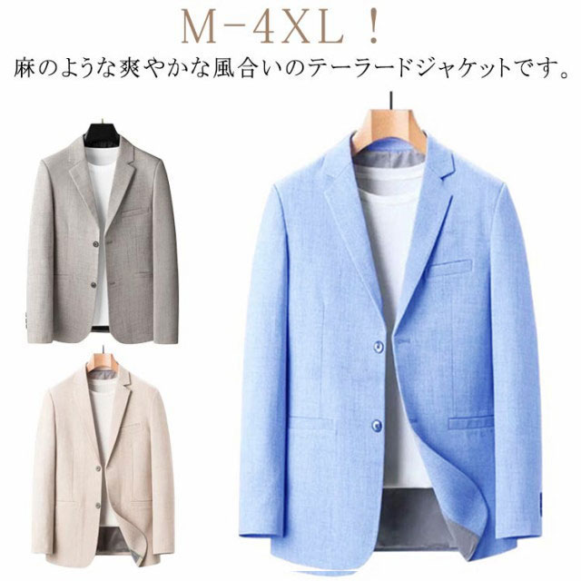 | M-4XL!麻のような爽やかな風合いのテーラードジャケットです。 吸汗性と速乾性に優れたポリエステル生地を使い、機能性にも優れたアウターとなっております。 大人かつ上品な雰囲気を演出。 カジュアルは勿論、ドレッシーでパーティーのジャケットコーデやゴルフの行き来にもお勧め。 シンプルなデザインなので、合わせるアイテムを選ばず万能に活躍します。 | |