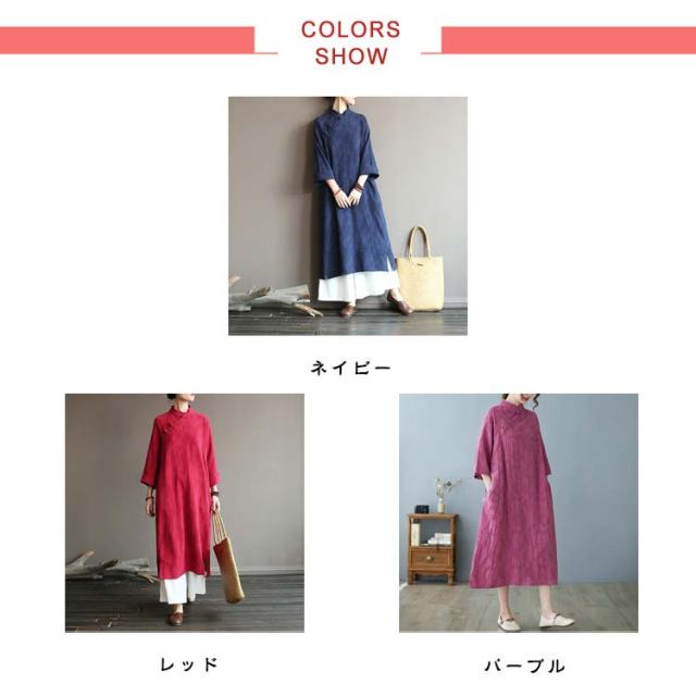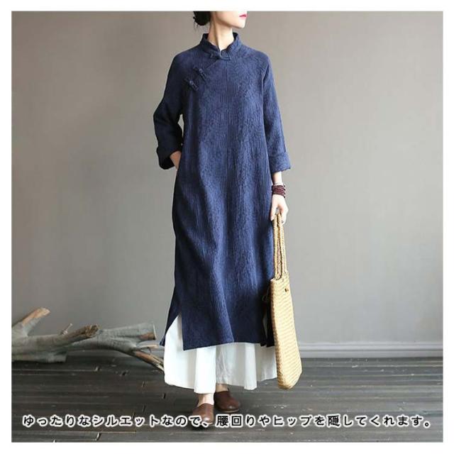 ワンピース 長袖 ロングワンピース レディース チャイナドレス 綿麻 マキシ丈 体型カバー 春秋 ゆったり ワンピース 民族風 ドレス ロング丈 ナチュラル 立ち襟 体型カバー カジュアル チャイナドレス レトロ 大きいサイズ 着?せ チャイナ風 無地 おしゃれ 送料無料