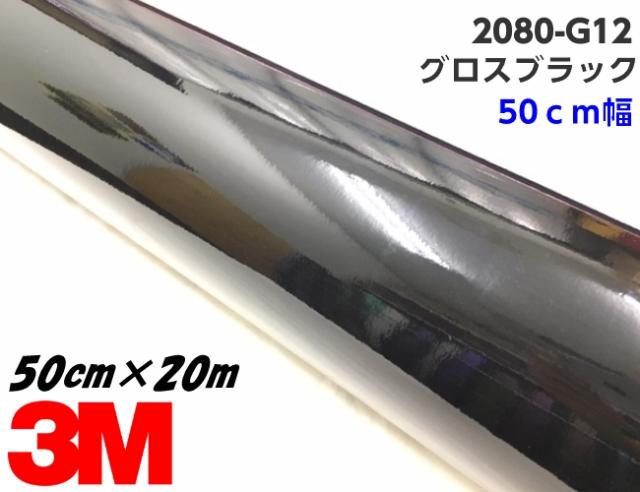 3M ラッピングシート 50cm幅×20m グロスブラック 2080シリーズG12 艶ありブラック カーラッピングフィルム ピアノ黒系 自動車用 カッティング