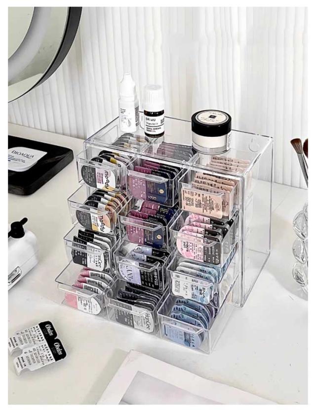 | 引き出しタイプのコンタクト収納ケースです。【3段?4段】2タイプ 収納力抜群な上にで、クリアタイプなのでストックの数も一目でわかるのでとても便利です。 シンプルなデザインでどんなインテリアにも合わせやすく、お部屋に馴染みます。 キッチン、バスルーム、デスク周りなど、さまざまな場所で活躍する多機能なケースでコンタクトはもちろん、メイク道具などの小物の整理にも役立ちます。 散らかりがちなコンタクトをスッキリ収納できる収納ケースです。 | |