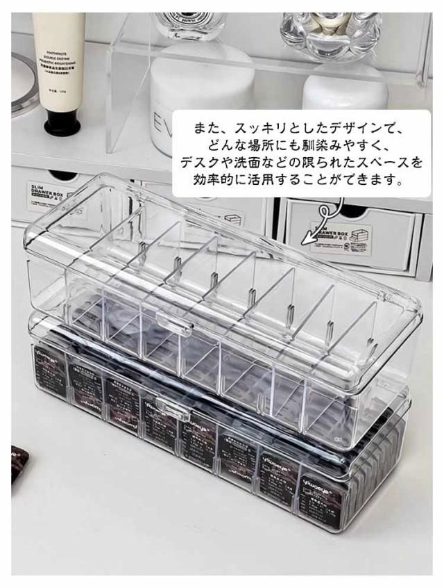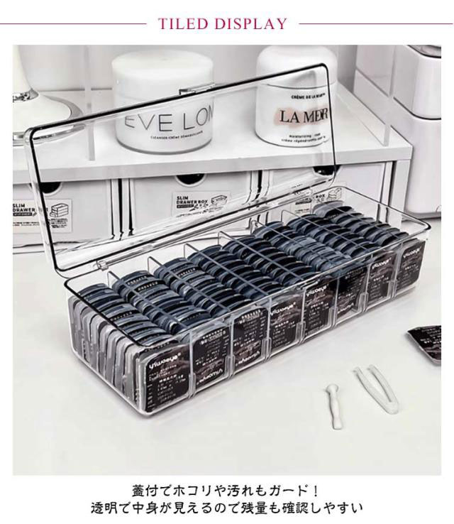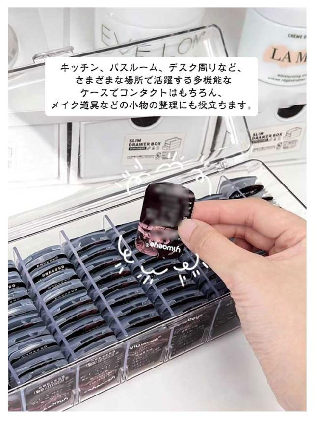 | 散らかりがちなコンタクトをスッキリ収納できるアクリル収納ケース。【最大72個収納可能】 蓋付でホコリや汚れもガード!透明で中身が見えるので残量も確認しやすい キッチン、バスルーム、デスク周りなど、さまざまな場所で活躍する多機能なケースでコンタクトはもちろん、メイク道具などの小物の整理にも役立ちます。 クリアなケースがインテリアとしても素敵なアクセントになります。シンプルでありながら、どこに置いてもおしゃれな雰囲気を演出できるため、韓国雑貨や北欧風のインテリアにぴったりです。 また、スッキリとしたデザインで、どんな場所にも馴染みやすく、デスクや洗面などの限られたスペースを効率的に活用することができます。 | |