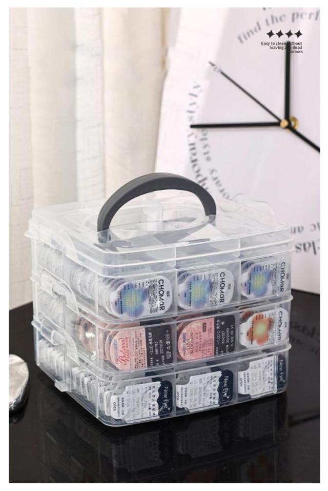 コンタクト収納ケース 3段 蓋付き 仕切り コンタクト カラコン ワンデー 収納ケース 透明 クリア 小物入れ 小物収納 アクセサリー 収納 ケース 収納ボックス 大容量 コンタクトケース 使い捨てコンタクトレンズ収納 持ち運び 持ち手付き インテリア 雑貨