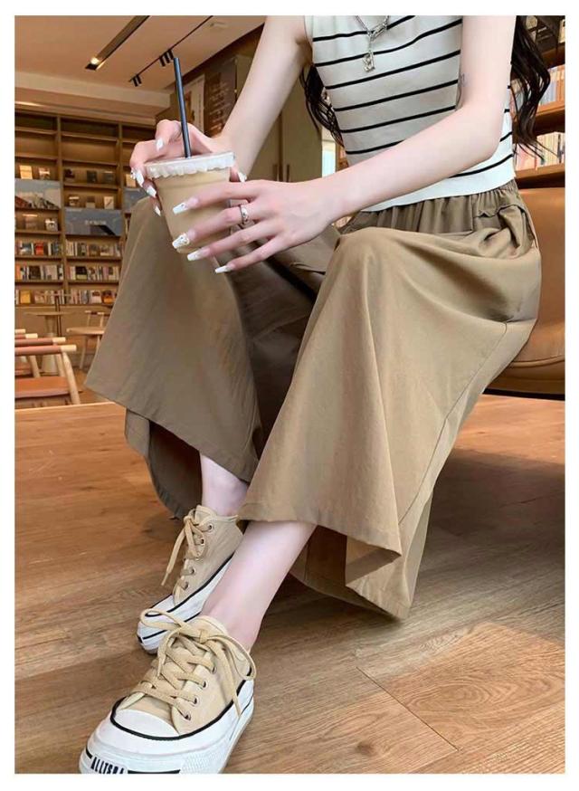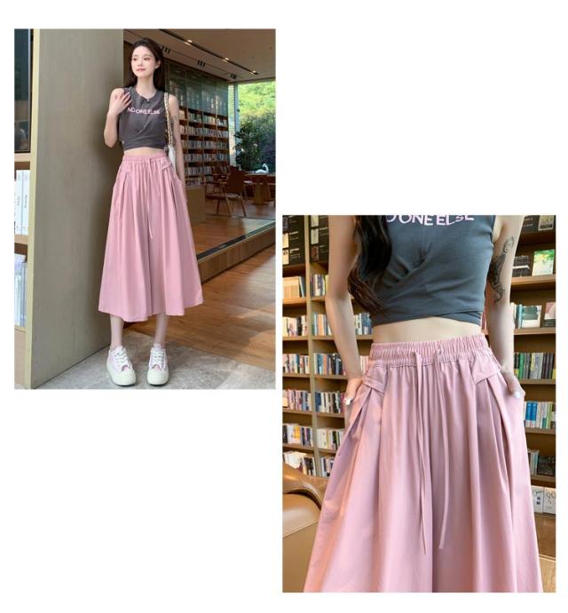 送料無料 ガウチョパンツ ワイドパンツ レディース クロップドパンツ コットン パンツ スカンツ スカーチョ キュロット 七分丈 ワイド ガウチョ スカート風 ボトムス ウエストゴム 体型カバー ゆったり カジュアル シンプル 大きいサイズ