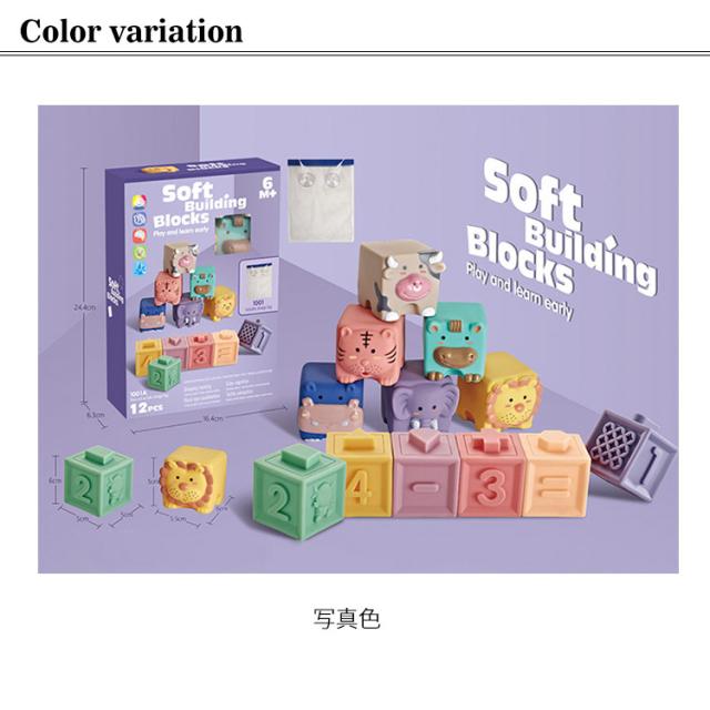 ソフトブロック 音の出るおもちゃ 積み木 12pcs 子供 知育玩具 音が鳴る ブロック 柔らかい 赤ちゃん お風呂遊び 動物 象 河馬 乳牛 牛 虎 ライオン 6ヶ月 1歳 子どもの日 出産祝い 男の子 女の子 誕生日 プレゼント 送料無料