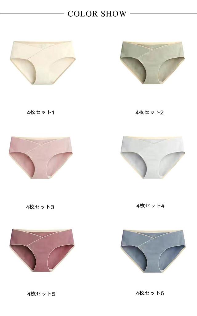 | 体型の変化にも対応のローライズデザイン 締め付けから開放マタニティショーツ 【4枚セット】 ・体型変化にも対応できるローライズマタニティショーツ3枚セット ・飽きのこないシンプルな無地に、おしゃれなV字クロスデザインです。 ・ローライズなのでお腹を圧迫しないから安心!産後のおしゃれにも使えます! ・伸縮性にすぐれた綿混紡生地はサラッとした手触り、通気性も抜群!お肌にやさしい素材 ・デリケートなマチの部分はダブルコットンになって、抗菌効果があるためデリケートな時期も安心 ・3Dヒップアップデザインでしっかりとお尻を包み込み、美しいラインをつくります。 ・3枚セットだから洗い変えにも便利!おしゃれなカラーが気分を上げてくれます。 | |