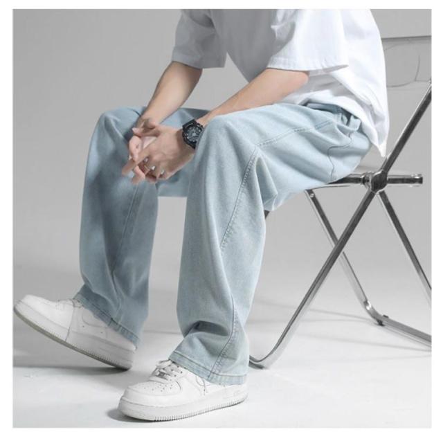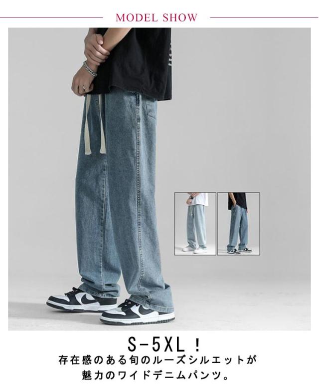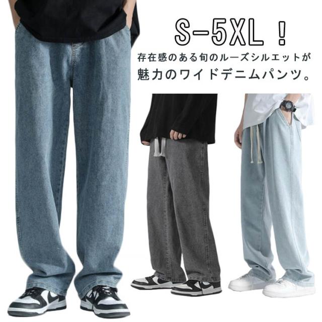 ワイドパンツ デニムパンツ メンズ レディース ゆったり 太め ジーパン カジュアル ストリート ジーンズ 韓国ファッション 紳士用 おしゃれ ロングパンツ 大きいサイズ 体型カバー 長ズボン ボトムス 春 夏 秋 脚長効果 無地 リラックス 送料無料 S-5XL