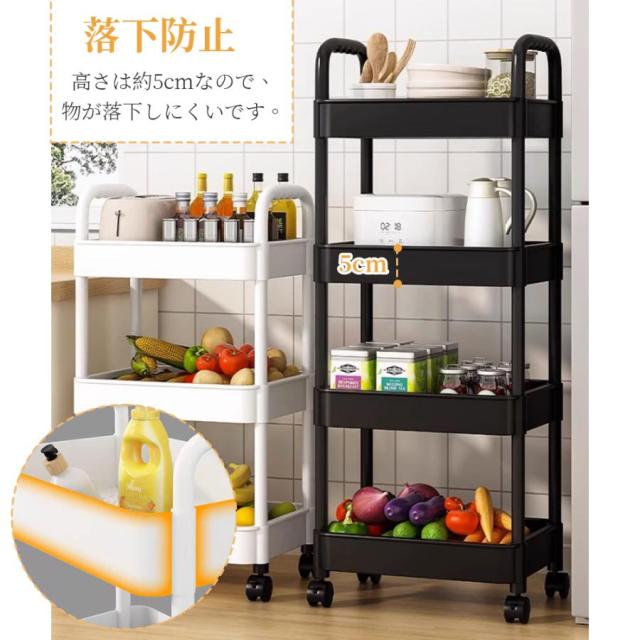 収納ラック キャスター付 4段 キッチンワゴン 隙間収納 バスルーム収納 トイレ収納 キッチン収納 キッチンカウンター インテリア 新生活<