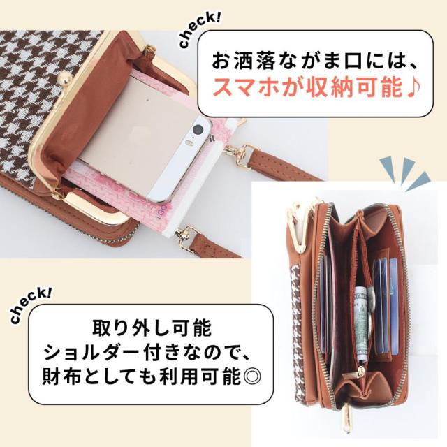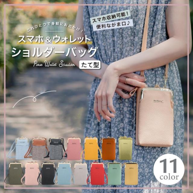 スマホポーチ スマホショルダー 財布機能付き レディース がま口 縦型 財布 ショルダーバッグ 女子 学生 スマホポシェット 多機能 プレゼント 母の日