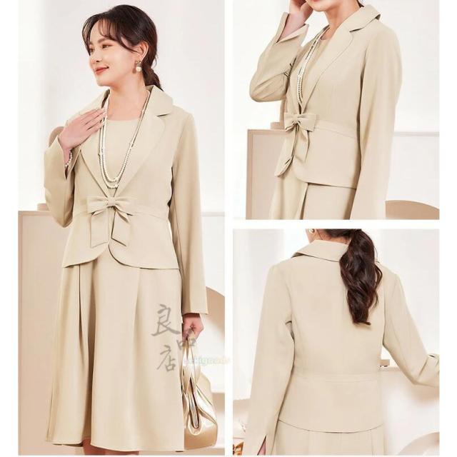 お色は使い勝手の良いベージュ、ネイビー、ブラックの3色をご用意。落ち着いた色味でシーンを選ばず着られます。ベーシックなデザインなので小物使いを変えることで、入学式・卒業式など式典や、冠婚葬祭、パーティーなど、様々なシーンに着回し可能です。それぞれ単品でも着用可能なので、お手持ちのお洋服とのコーディネートも楽しめます。
