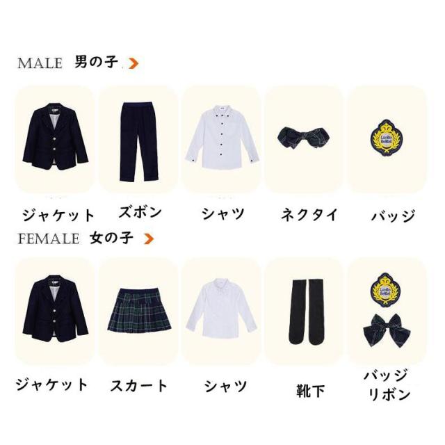 セット内容: 5点セット【女の子(ジャケット+スカート+Yシャツ+リボン+ワッペン)】
