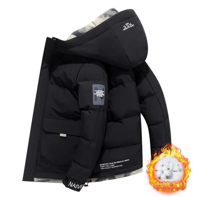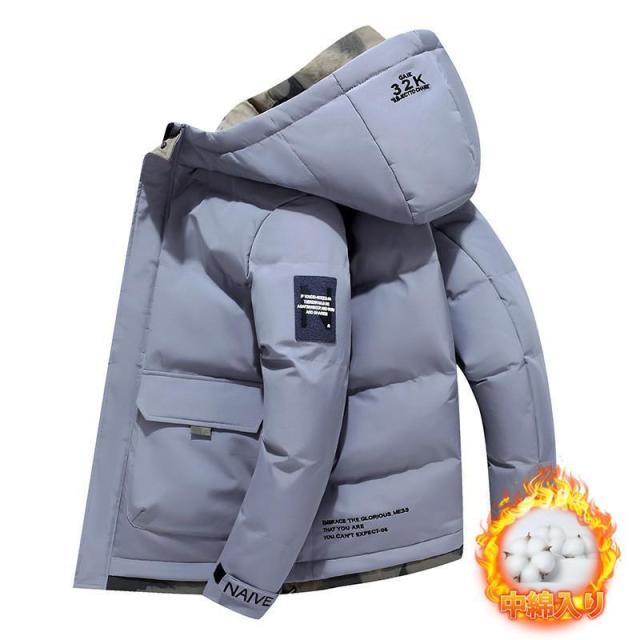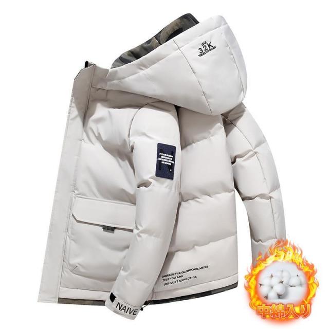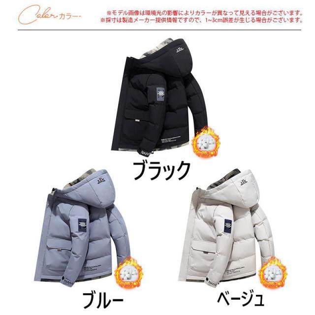 中綿ジャケット メンズ ダウンコート 中綿コート 前開き ダウン入り フード付き 防寒着 冬 ブルゾン 寒さ対策 防風 撥水 ショート 厚手 通勤