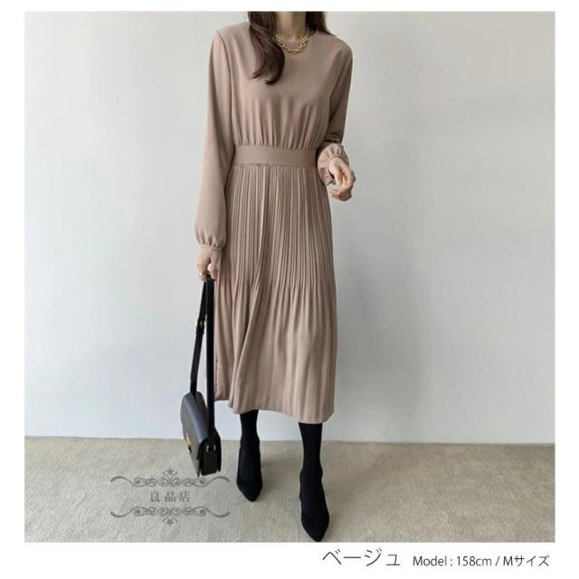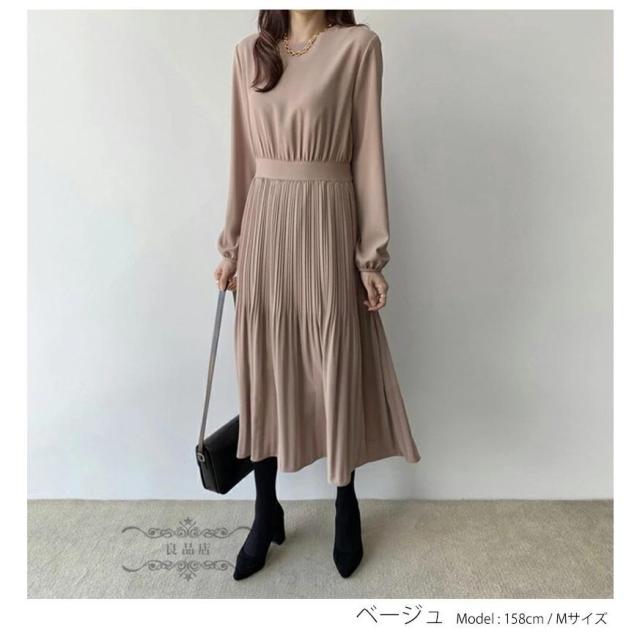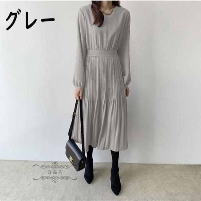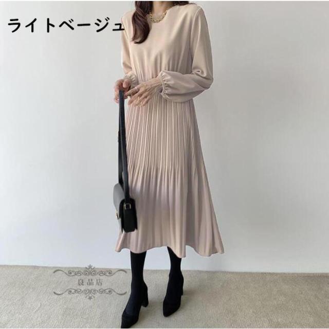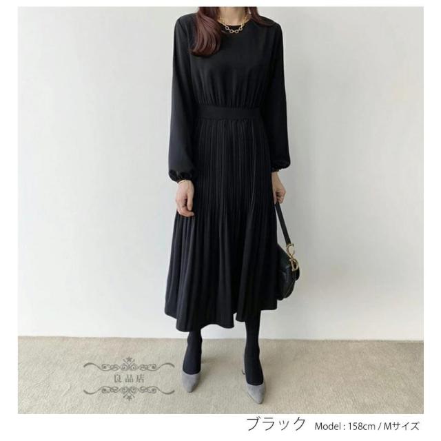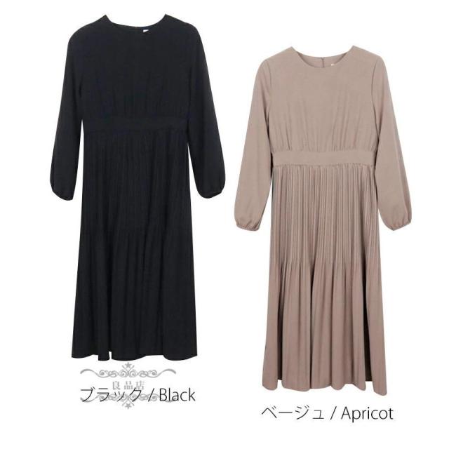 ワンピース レディース プリーツ 長袖 ロング丈 春 秋 着痩せ ゆったり Aライン おしゃれ 通勤 入学式 入園式 卒業式 卒園式 パーティードレス 結婚式