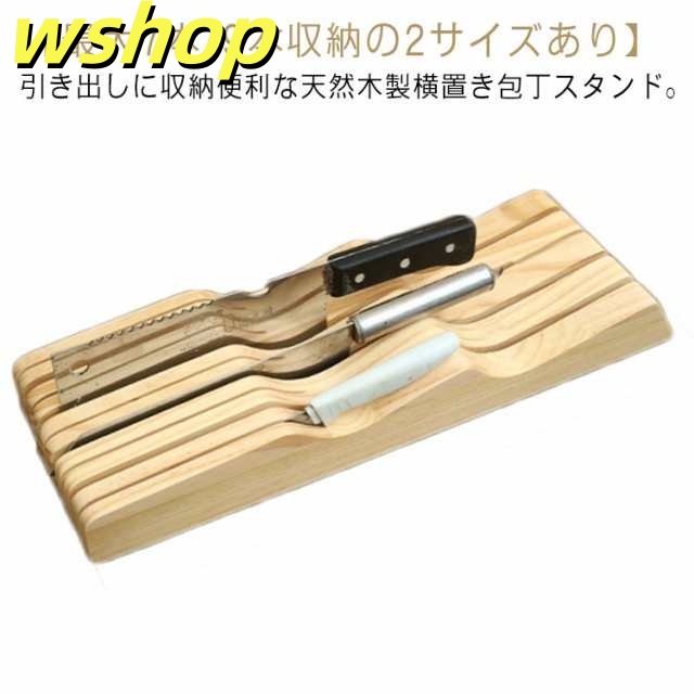 | 引き出しに収納便利な天然木製横置き包丁スタンド。【最大7本/9本収納の2サイズあり】 底部に滑り止め付きで安定感もあり、安心してお使い頂けます。 天然の木を採用するので丈夫で長持ち、抗菌。 最大7本/9本まで同時収納可能です。 キッチンに馴染むシンプルなデザイン。 | |