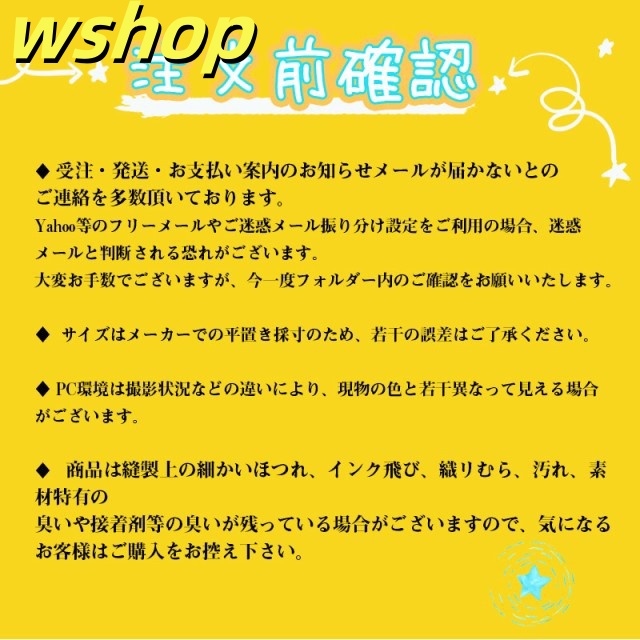 一部商品にはカラー・サイズの選択欄がない場合がございます。その場合は、ご注文時に備考欄へご希望のカラー・サイズをご記入いただくか、可能な限り早めにメールでご連絡ください。ご連絡がない場合は、商品をランダムに発送させていただきます。