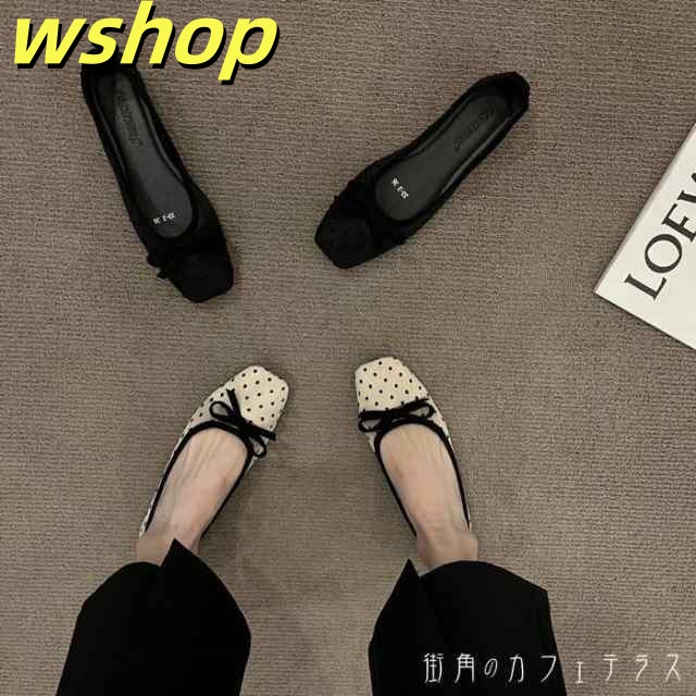 家中時間充実化 毎日使える便利品 靴 今だけ ドット柄 シューズ レディース ドット 水玉 ランキング常連 スクエアトゥ ローヒール 22.5?24.5cm 【wshop バレエシューズ 】バレエパンプス 収納便利 フラットシューズ 即納対応中