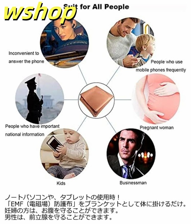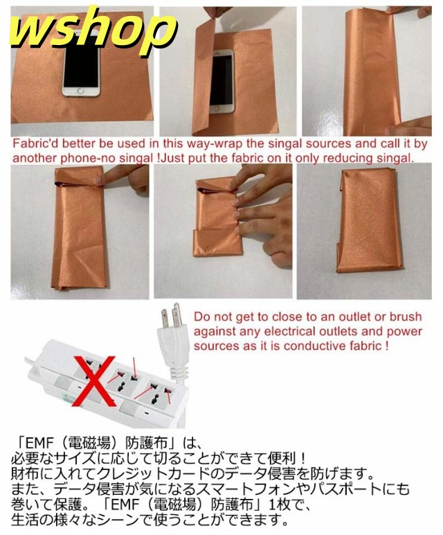 | 電磁波から体を守る♪110×100cmの大判電磁波遮断シート。 「EMF(電磁場)防護布 」を体に巻いたり、掛けることで、身の回りの電磁波が気になる電化製品(PC・スマートフォン・TV・無線ルーター・電子レンジなど)の電磁波を遮断するシート。 ノートパソコンや、タブレットの使用時!「EMF(電磁場)防護布」をブランケットとして体に掛けるだけ。妊婦の方は、お腹を守ることができます。男性は、前立腺を守ることができます。 「EMF(電磁場)防護布」は、必要なサイズに応じて切ることができて便利!財布に入れてクレジットカードのデータ侵害を防げます。また、データ侵害が気になるスマートフォンやパスポートにも巻いて保護。「EMF(電磁場)防護布」1枚で、生活の様々なシーンで使うことができます。 お好きなサイズにカットして電化製品をカバーしたり、袋状に加工してスマートキーやスマホ、クレジットカードを入れたり、リレーアタック対策として活躍できます。 「EMF(電磁場)防護布」は、薄くて柔軟性に優れています。110×100cmの大判サイズなので、ブランケットや下敷きなど、使い方は自由自在! 送電線、配電線、携帯電話基地局の近くにお住まいの方、電磁波過敏症の方や、妊娠中で電磁波による影響が不安な方などにもオススメです。 | |