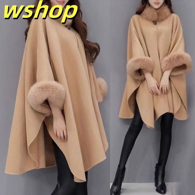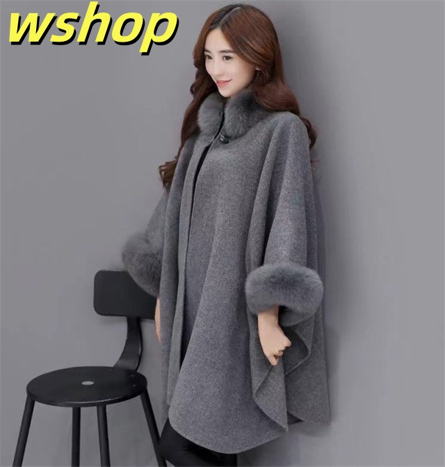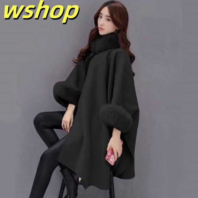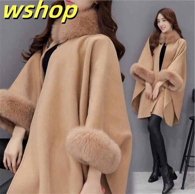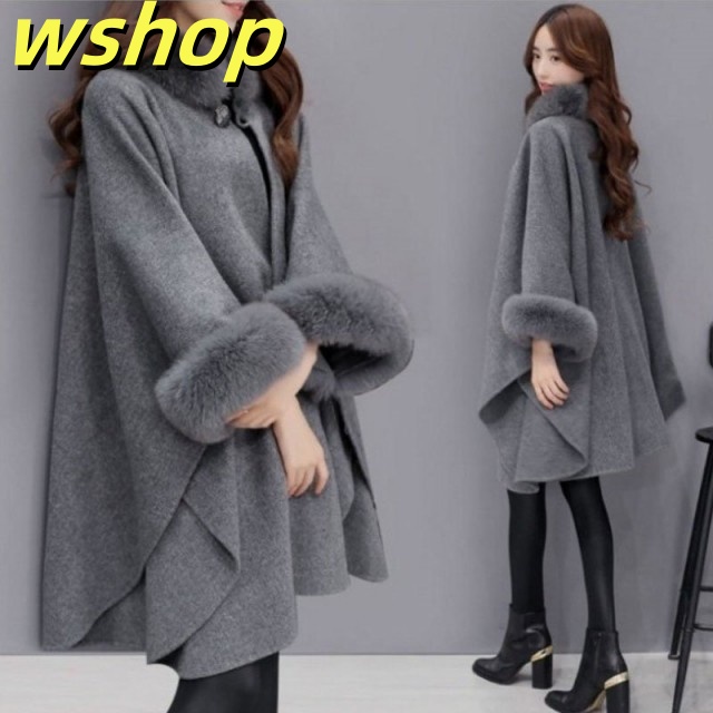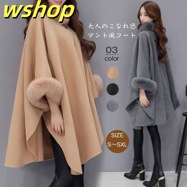 売れ筋アイテム 多機能デザイン 売上急増中 レディース ケープコート ロング 秋冬 アウター 】フォックスファー付 ポンチョ マント フェイ 冬 【wshop 今だけ コート ケープ 話題商品 送料無料実施中