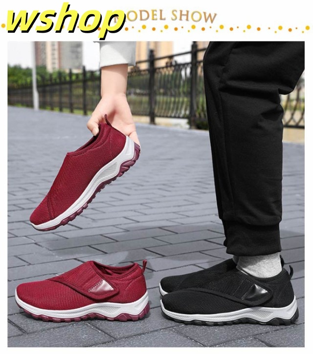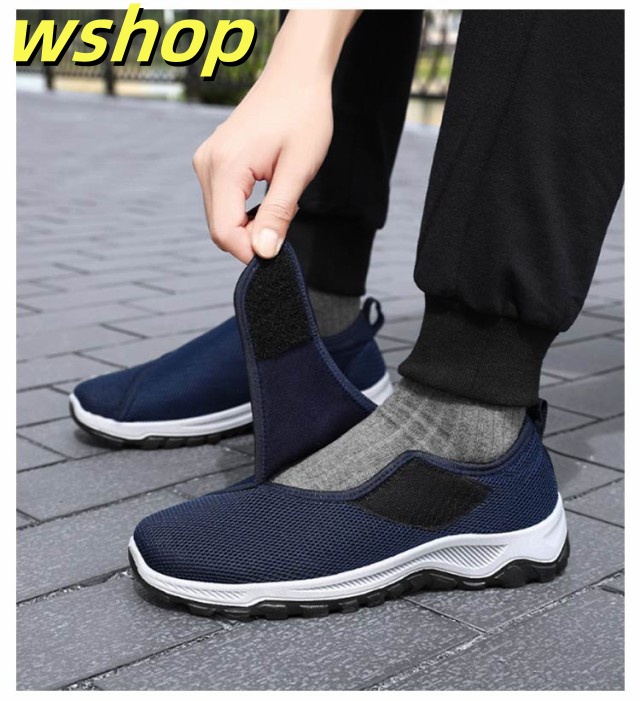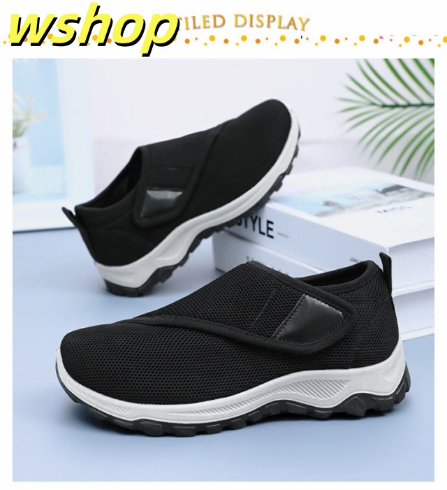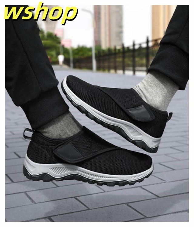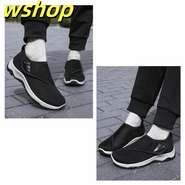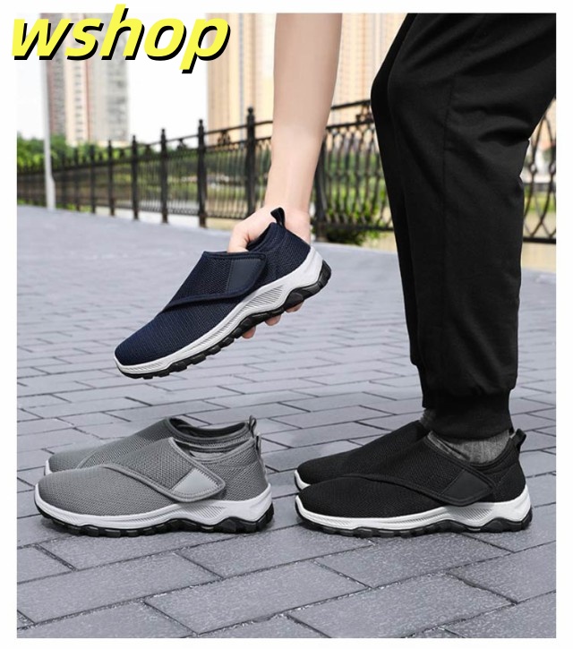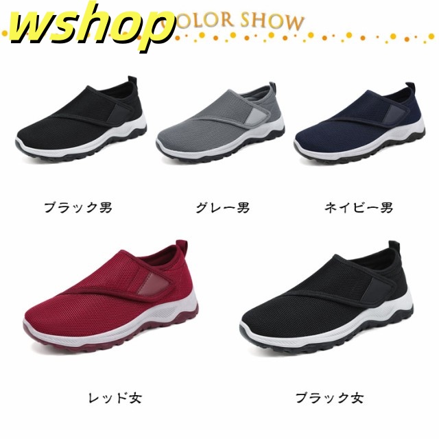 軽量仕様 売上急増中 スニーカー シューズ スリッポン 歩きやすい 】メッシュ マジックテープ 疲れない 紐なしスニーカー リハビリシューズ 黒靴 【wshop ウォーキングシューズ 運動靴 靴 敬老の日 履きやすい 大きいサイズ 軽量 送料無料