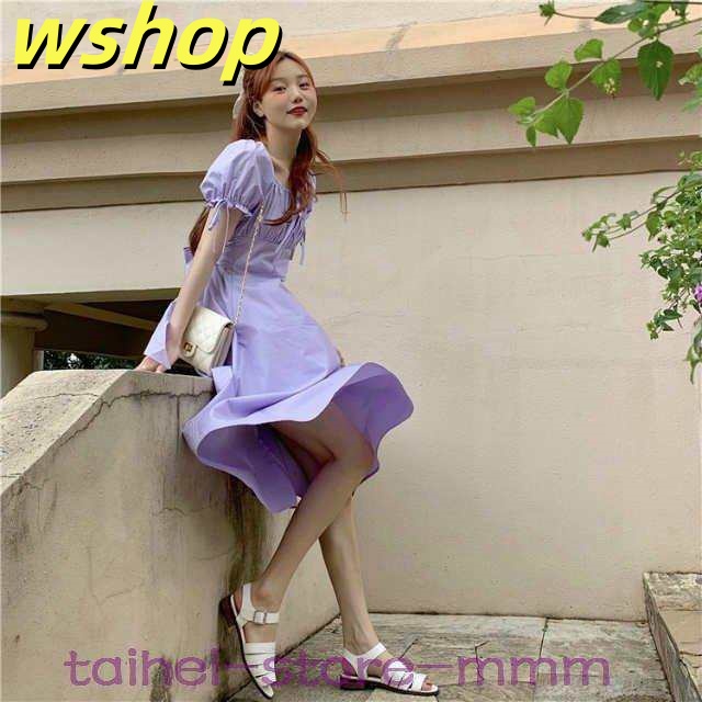 大人プリンセスワンピ ラプンツェル風 半袖ひざ下ワンピース ロング ワンピース ロングドレス パーティー タイト フレア 夏ワンピ リゾートワンピ マキシ丈 ハイウエスト ホワイトワンピ パープル 清楚
