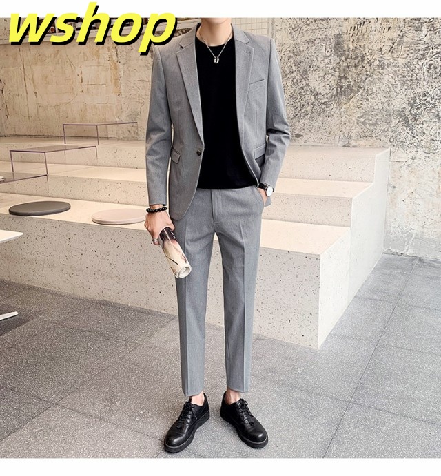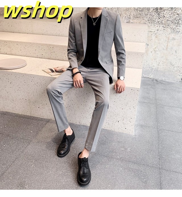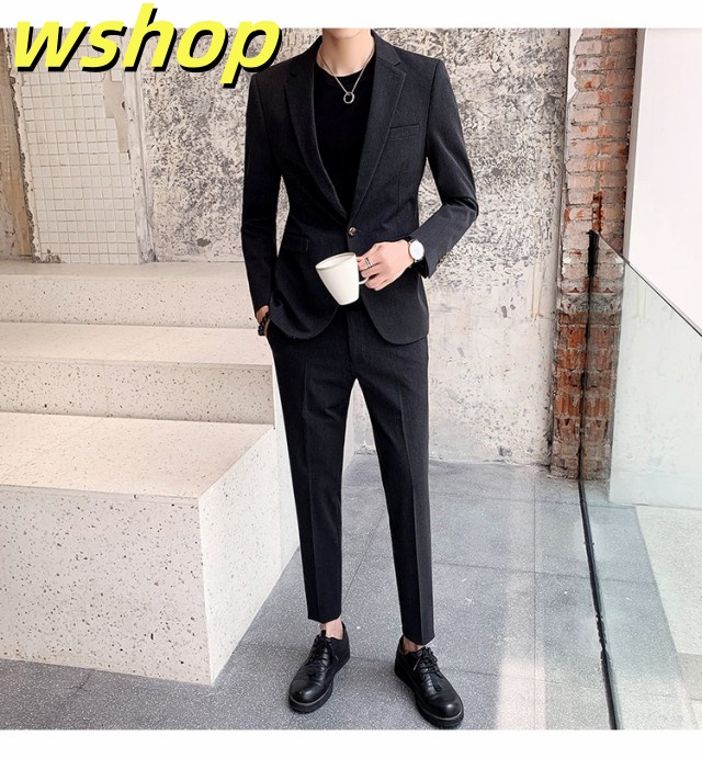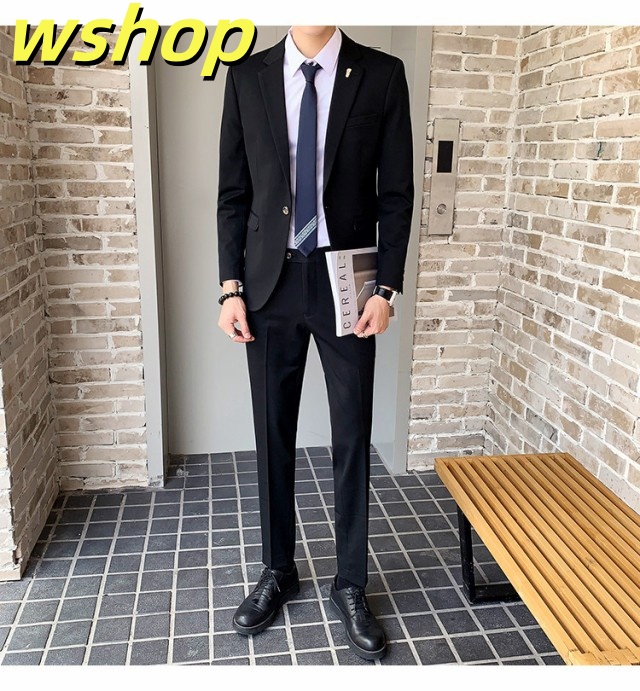家中時間充実化 品質安心 かっこいい 出張 おしゃれ 【wshop セットアップ 今だけ 普段使い 紳士服 話題商品 SNS話題 細身 ワンボタン 】スーツセット ジャケットテーパードパンツ 2点セット 通勤 数量限定入荷