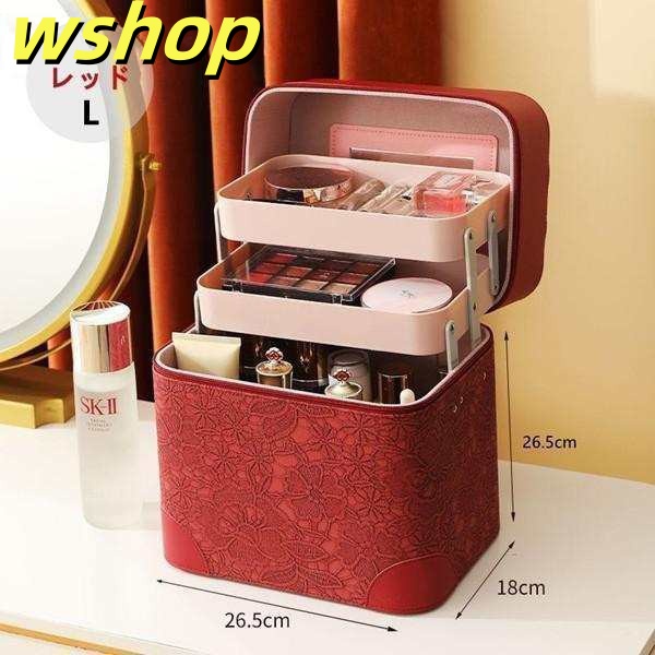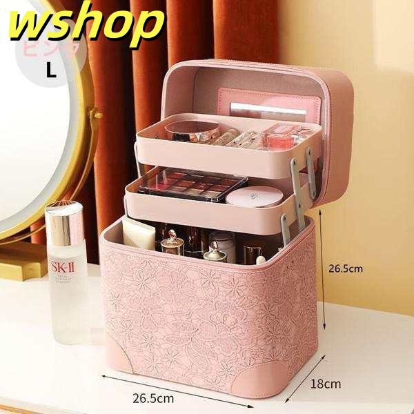 生活快適特集 ギフトにも最適 化粧 かわいい 】メイクボックス トレイ付き 大容量 小分け 送料無料 大きめ 持ち運び コスメボックス プロ 収納 軽量仕様 SNS話題 バニティ 【wshop 鏡付き ボックス 機能的 送料無料実施中