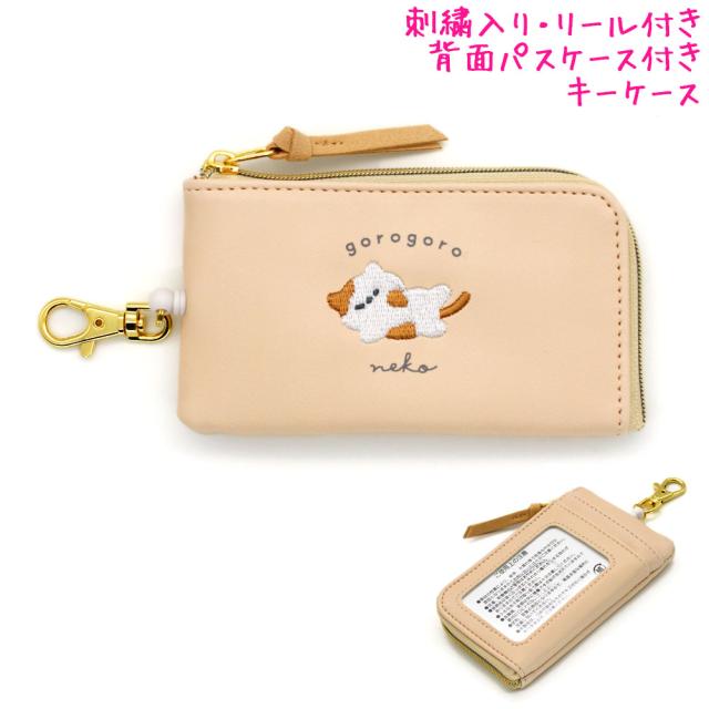 メール便 OK キーケース 女の子 向け パスケース付き ごろごろ ねこ 刺繍入り クラックス おしゃれ で かわいい 文房具