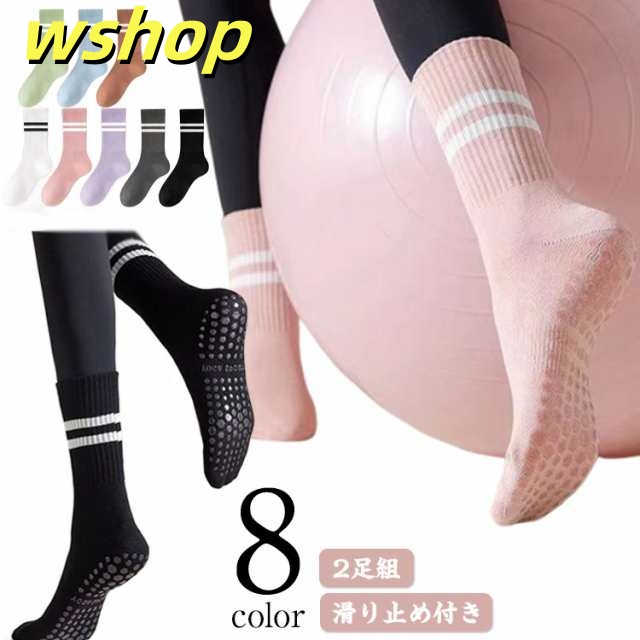【wshop 】【2足組】ヨガソックス 靴下 【2足組】ヨガソックス 通気性 フィットネス シリコン レディース ジム 滑り止め靴下 ピラティス ホットヨガ 抗菌 吸汗 ヨガ スポーツ靴下 スポーツ ソックス 滑り止め付き靴下 長い 綿 ラインソックス