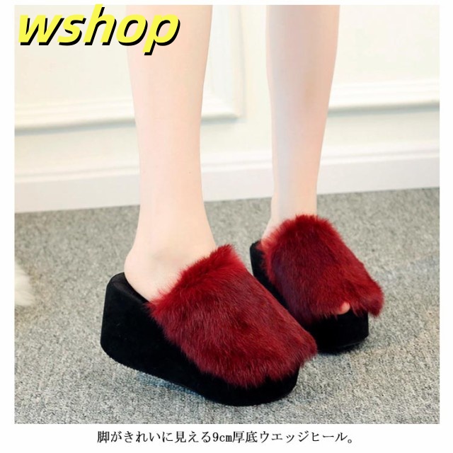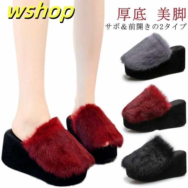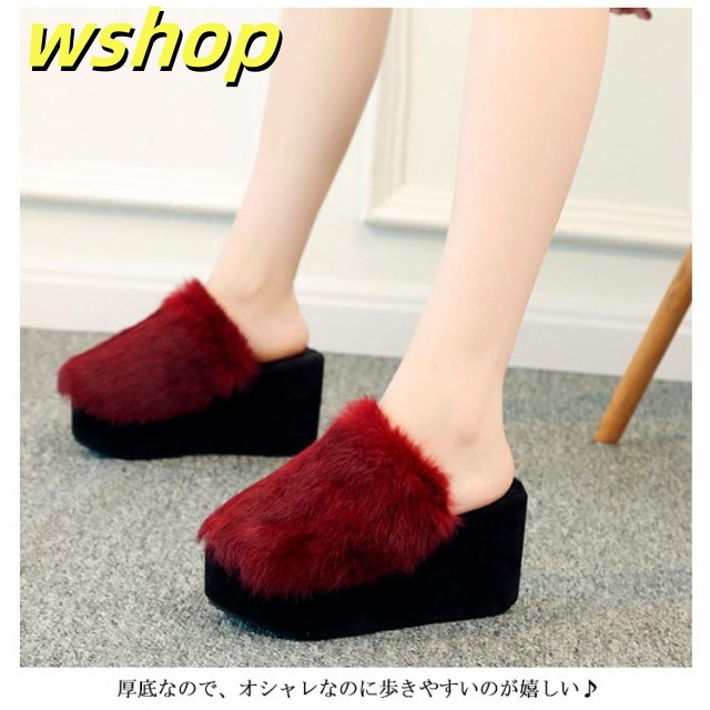 収納便利 レビュー高評価 レディーズ 【wshop フラットサンダル 厚底サンダル ふわふわ サンダル あったか 春 秋 冬 歩きやすい おしゃれ シューズ 美脚 もこもこ スリッパ 】カジュアル ファーサンダル お出かけ ラビットファー ウエッジヒール 送料無料