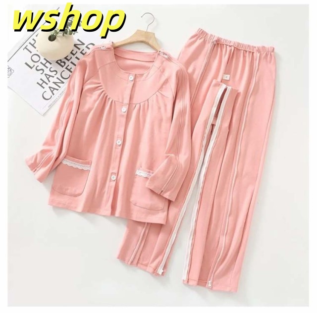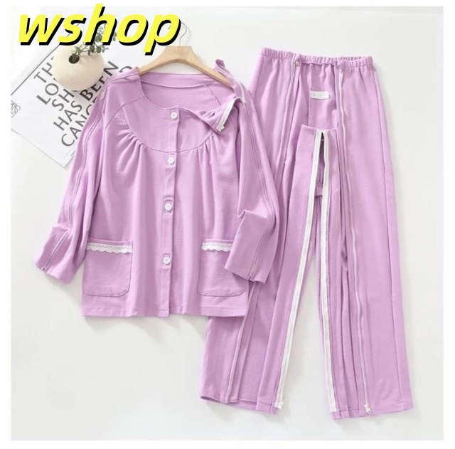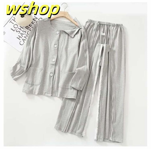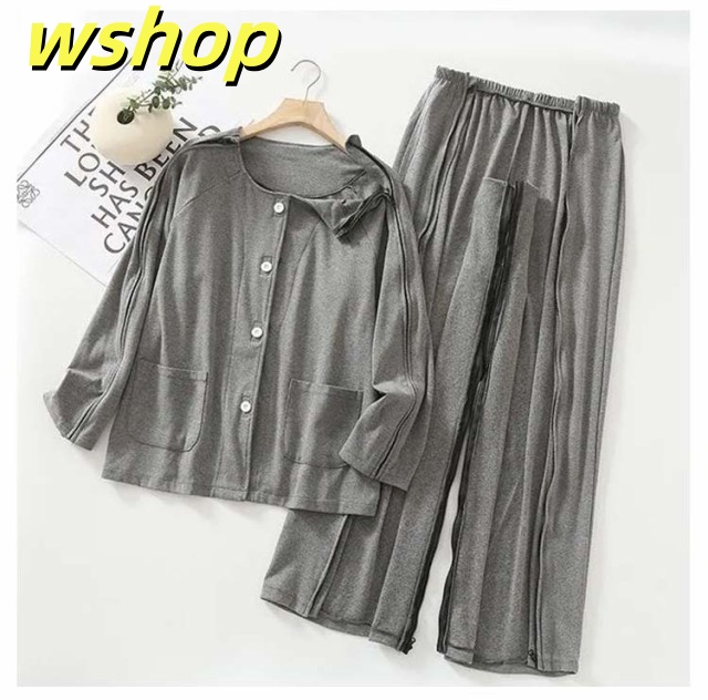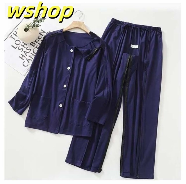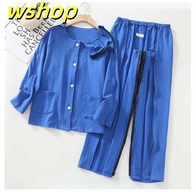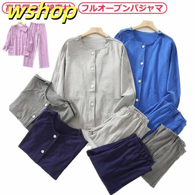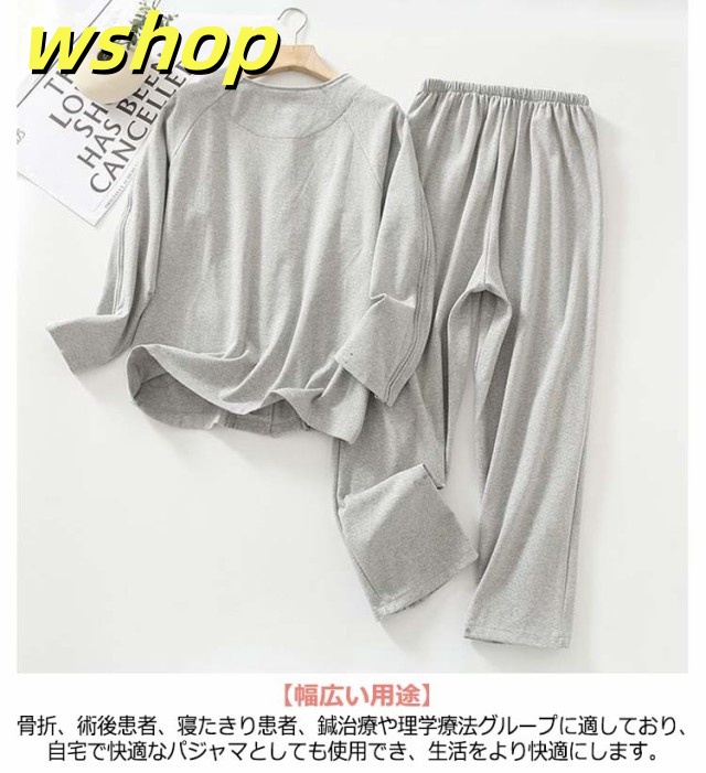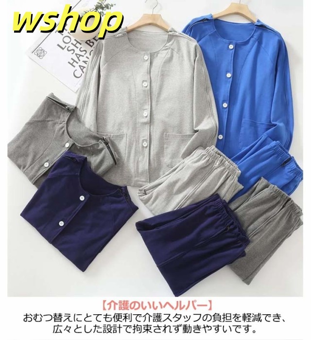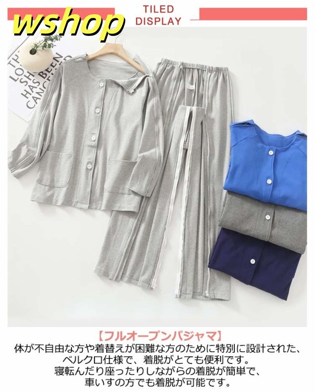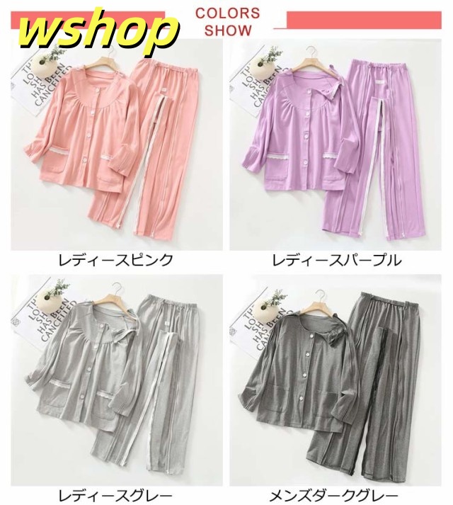 【wshop 】夏 紳士 通年用 診察 介護 上下セット 寝間着 レディース 術後 入院 女性 寝たきり パジャマ 点滴中 セミオープン 両脇全開 お着替 春 おむつ交換 秋 介護用パジャマ 介助 普段着 部屋着 高齢者 両開き 洗い替え 入院 通院 介護用 リハビリ 敬老の日 綿