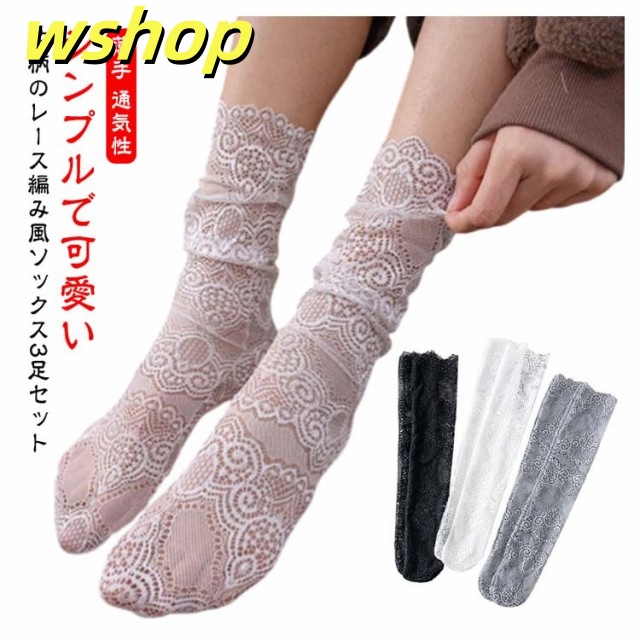 軽量仕様 SNS話題 薄い ミドル丈 かわいい 】花柄 スニーカー 靴下 エレガント パンプス おしゃれ サンダル 通気性 ソックス 薄手 可愛い レース編み風 レース 【wshop 春夏 3足セット レディース メッシュ ショートソックス シアー シースルー 送料無料