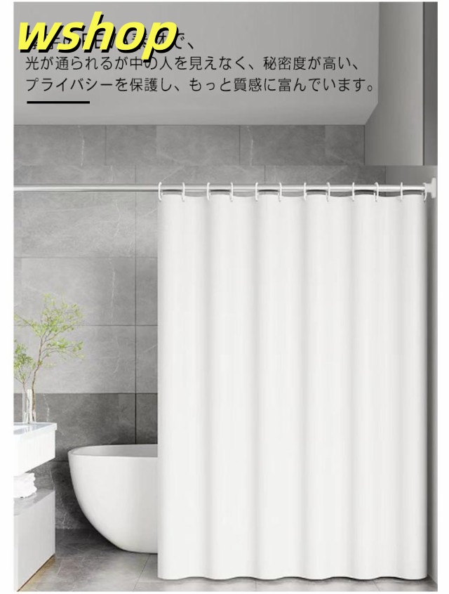 | 採光性よく、透けない・遮像シャワーカーテン。 幅80?300cm×丈180?200cm 厚手のPEVA素材で、光が通られるが中の人を見えなく、秘密度が高い、プライバシーを保護し、もっと質感に富んでいます。 防水性・防カビに優れ、熱や冷気を通しにくい。浴室のシャワーカーテンとしてはもちろん、ちょっとした目かくしや、暖房、冷房の効率アップにも。 透けないからシャワーする時がとても安心。収納スベースや、脱衣所等の空間は来客などの目に触れません、目隠しかーてんにもぴったり。 浴室カーテンを使用し、床に水が飛び散らないようにするとともに、バスルームの湿気を外に逃がさない保温効果があります。暑い夏でも寒い冬でもバスタイムを楽しめます。 上部合金製ハトメ加工、錆びにくく、長く綺麗にお使いただけます。 カーテンリング付属しているので、カーテンポールに引っ掛けるだけで取付できます。(カーテンポールは付属しません。) インテリアにあわせやすいおしゃれな無地デザイン、収納スベースや、脱衣所等の空間は来客などの目に触れません、目隠しかーてんにぴったり。 | |