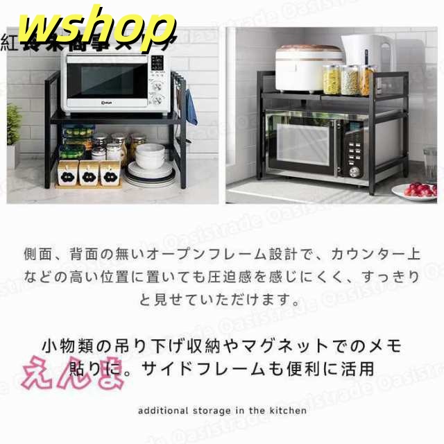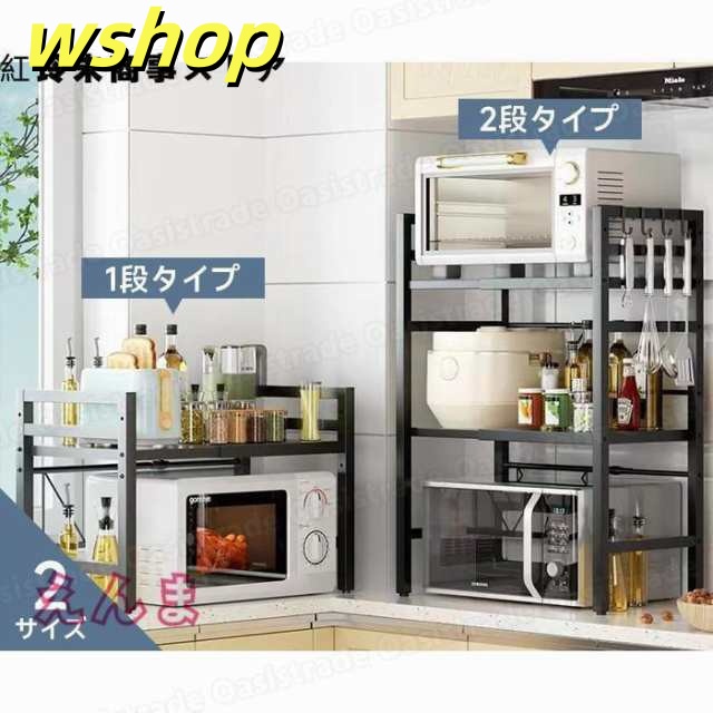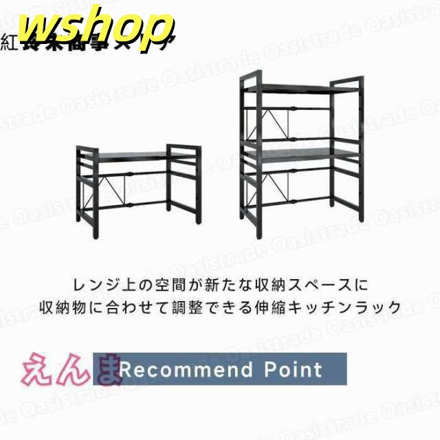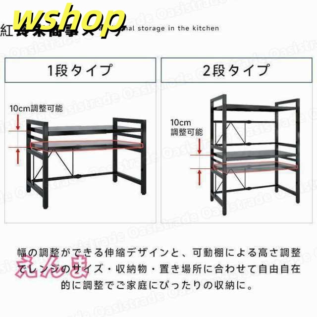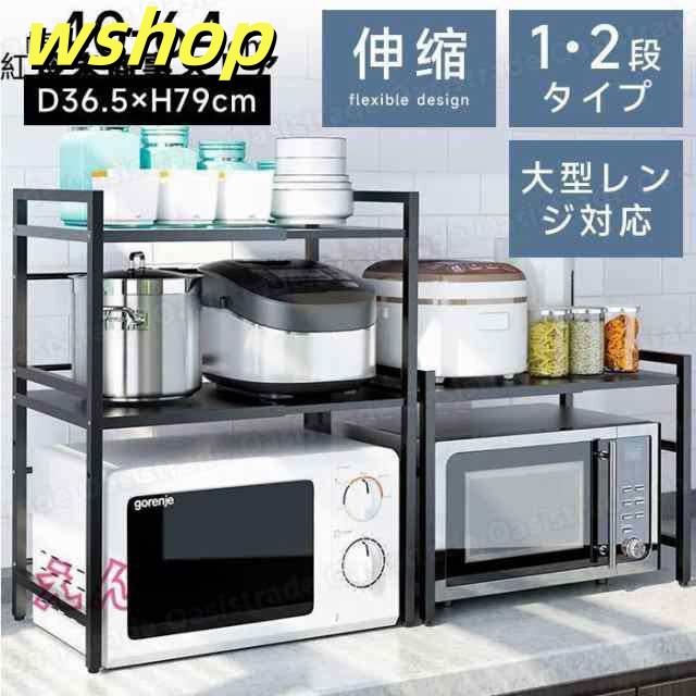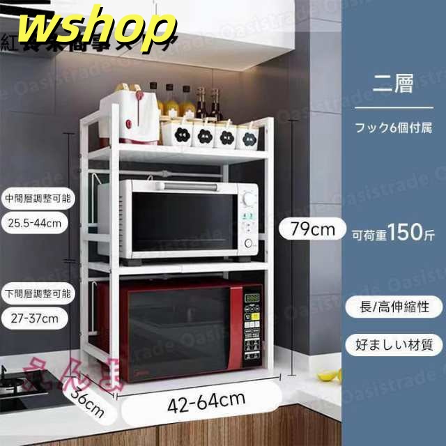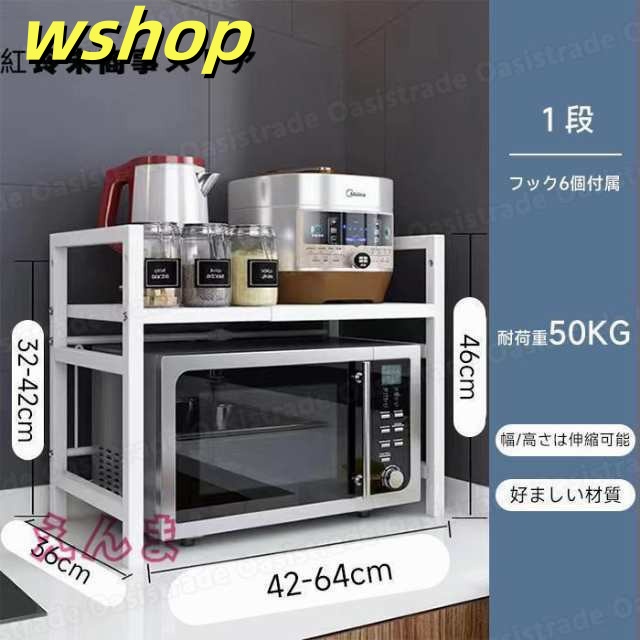 レビュー高評価商品 ギフトにも最適 大型レンジ対応 レンジ台 キッチンラック レンジ上ラック 幅42-64cm 省ス キッチン収納 今だけ 】S字フック6個付き 話題商品 レビュー高評価 電子レンジ棚 トースター 伸縮 【wshop 数量限定入荷