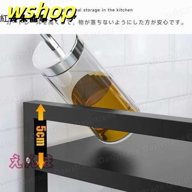棚の高さは2段階調節することができます。棚下の高さは最大で(約)46cmにできるので、大型レンジや背の高い調理器具などを収納することができます。