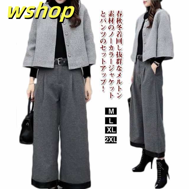 軽量仕様 SNS話題 ママスーツ セットアップ 【wshop 送料無料 きれいめ スーツ ノーカラージャケット 卒園式 ワイドパンツ フォーマル パンツスーツ 春 入園式 コート レディース セレモニー 】結婚式 卒業式 母 入学式 上品 おしゃれ 秋 カジュアル 送料無料