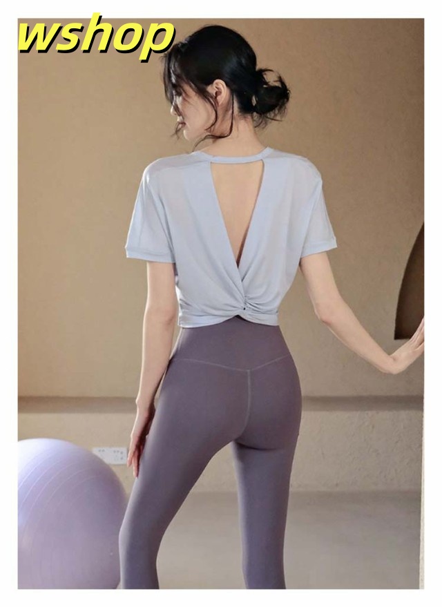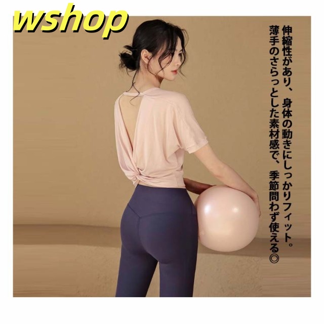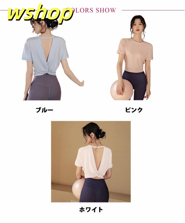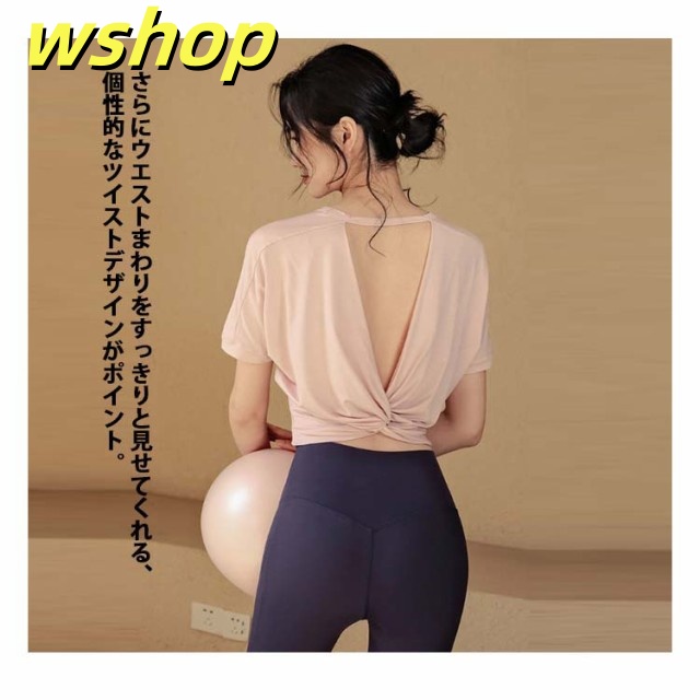 人気急上昇 売上急増中 伸縮性 バックオープン レディース おしゃれ ピンク ヨガ スポーツ ジョギング ストレッチ 【wshop ホワイト マラソン 半袖 ツイストデザイン ダンス ランニング 】ヨガウェア 丈短め ウォーキング 背中開き 背中あき トップス 今だけ限定