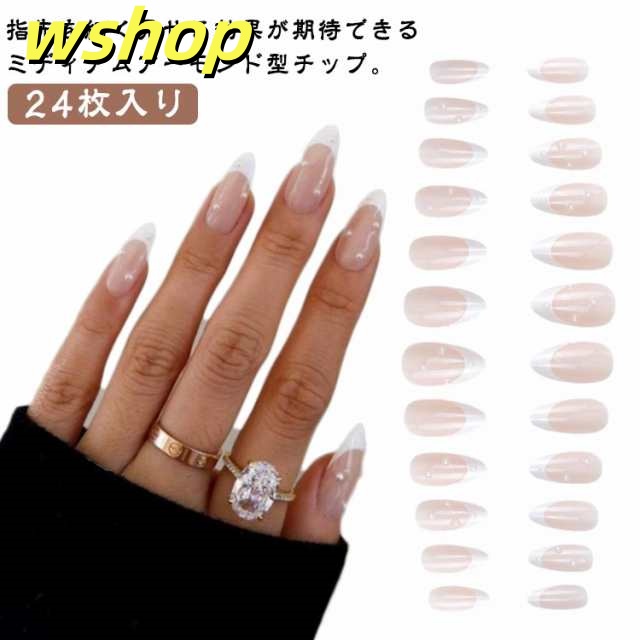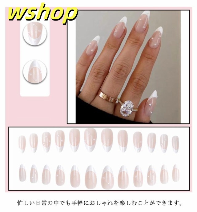 | 指先を細く見せる効果が期待できるミディアムアーモンド型チップ。 どんなシーンにも合う手が美しく見えるホワイトフレンチデザイン。 いつもとは違う特別感のあるすらりとした指先に。 貼るだけで簡単に装着できる。 忙しい日常の中でも手軽におしゃれを楽しむことができます。 ネイルチップなら貼るだけですぐに本格ネイルの出来上がり! 普段はネイルが出来ない方も忙しくてサロンに行けない方にもぴったり☆ 適用シーン:普段用 結婚式 発表会 成人式 通勤 デートなど | |