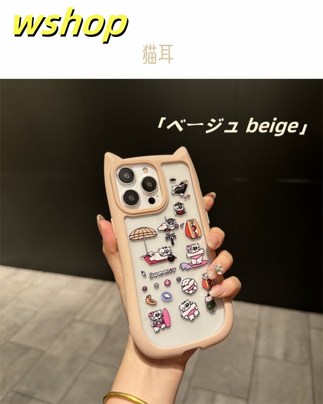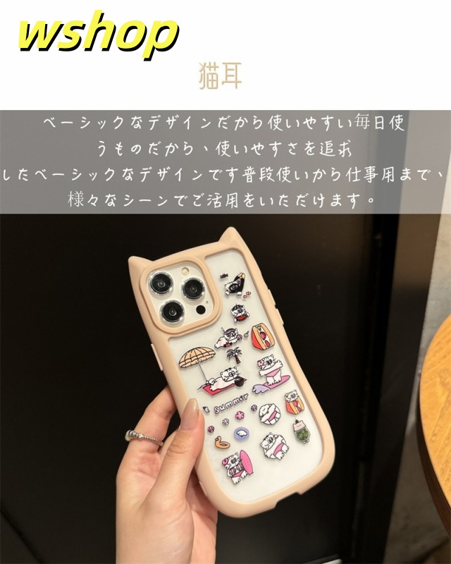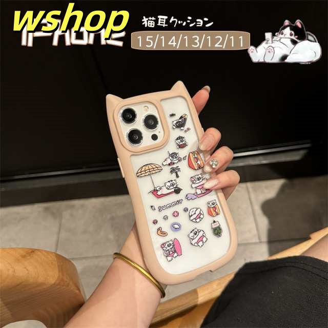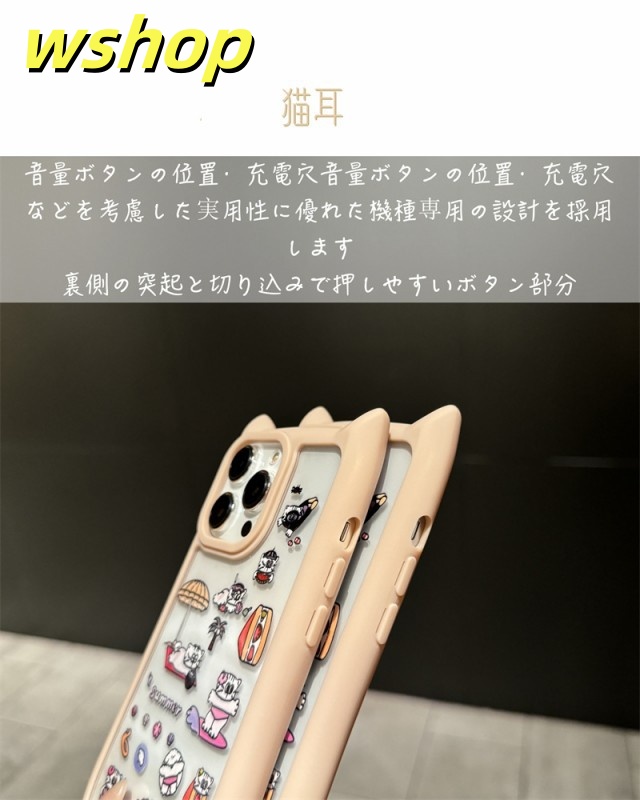 【wshop 】iPhone16 15 14 Pro Max ケース カバー アイフォン14プラス 14プロマックス 猫耳 ネコミミ ネコ 猫 雑貨 猫グッズ ねこグッズ ねこ 猫耳ケース 背面ガラス かわいい おしゃれ プレゼント iPhone15 15pro ケース シンプル iphone14 14promax ケース