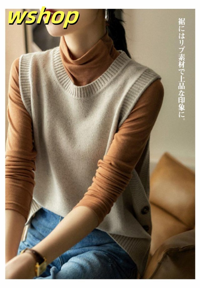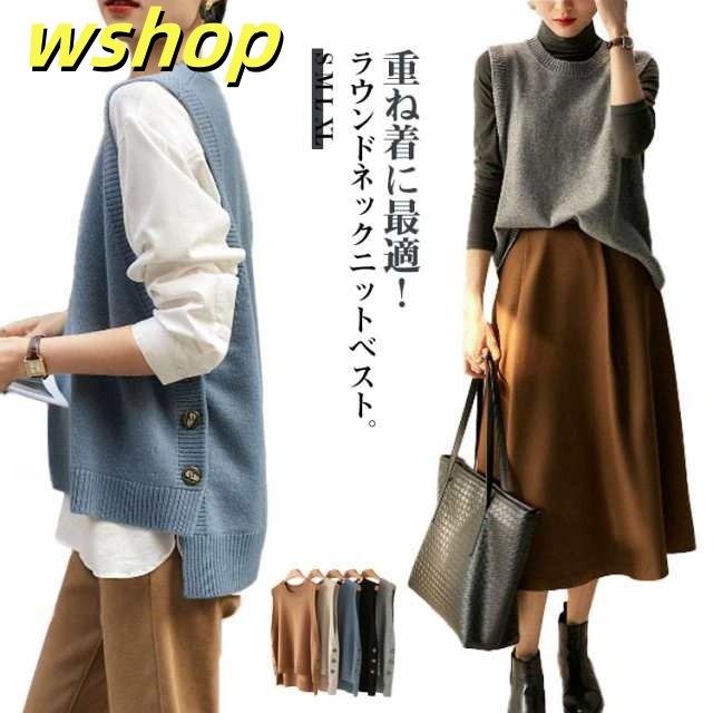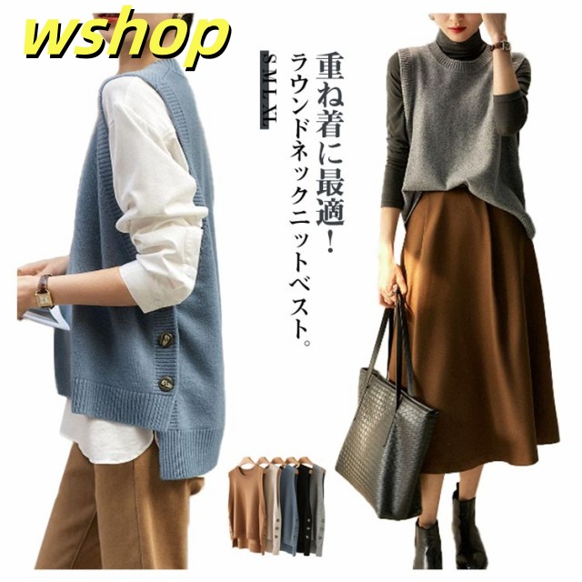 | 重ね着に最適!ラウンドネックニットベスト。 裾にはリブ素材で上品な印象に。 お手持ちのトップスと合わせればコーデ無限大! | |
