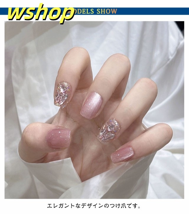 軽量仕様 SNS話題 爪チップ ネイルシール かわいい 】つけ爪 ピンク系 貼るだけ ミディアムチップ 大人ネイル キラキラ 付け爪 ロング 貼るネイル 3D 秋冬 【30枚入り】ネイルチップ シールネイル 成人式 ブライダルネイル 【wshop エレガント 今だけ限定