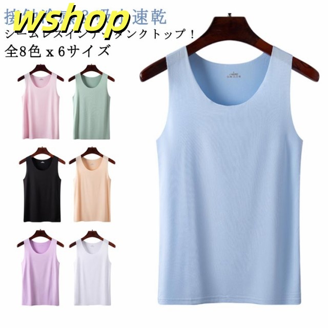 接触冷感 見えない 吸水速乾 レディース 涼感 タンクトップ インナー ひんやり 下着 肌着 ブラ紐 タンクトップ キャミソール レイヤード 全8色x6サイズ 大きいサイズ Uネック