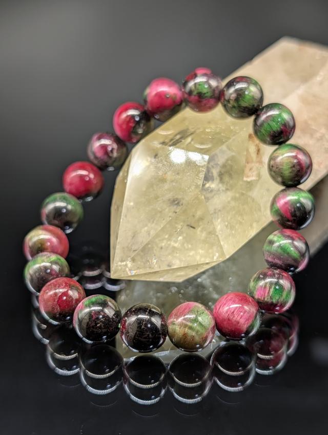 パワーストーン タイガーアイ 虎目石 10mm ピンク グリーンMIX ブレスレット 天然石 金運 仕事運 メンズ レディース