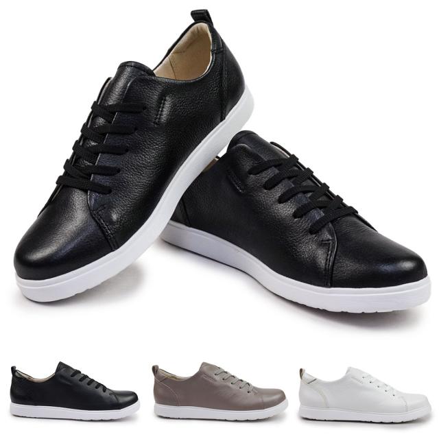 レディース スニーカー 黒 白 グレー 通勤 ベーシック クラシック 革靴 レザーシューズ 履きやすい 紐靴 天然皮革 カジュアルシューズ シンプル コートスニーカー 軽量 軽い 幅広 3E